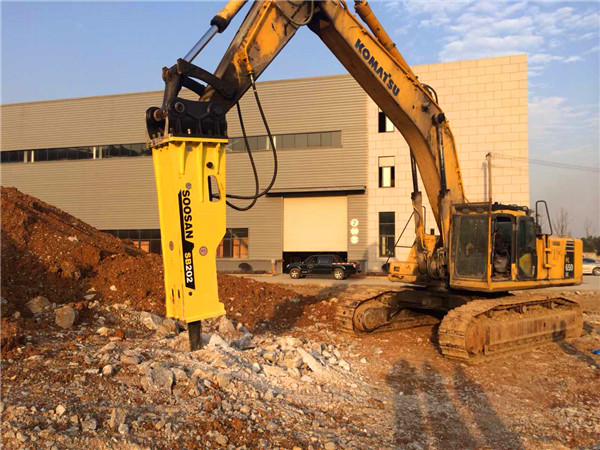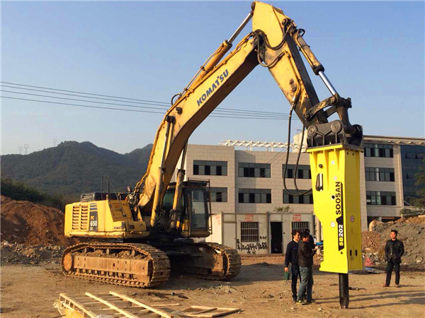 70-120噸挖機上安裝水山破碎錘SB202,釬桿直徑210